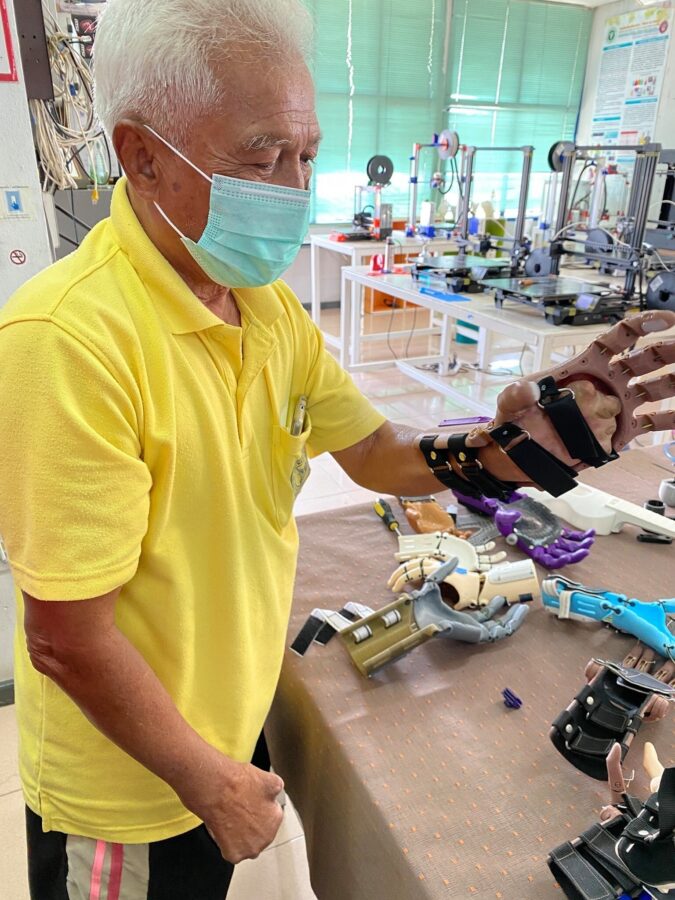 Recipient of a Kinetic Hand made by Thai Reach, a group who make devices for people with Leprosy in Thailand. He had lived without both hands for 50 years.